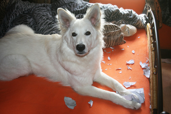 - De onderzetters van tafel waren ook leuk om op te kauwen als ze het voor elkaar kreeg ze stiekem te pikken
