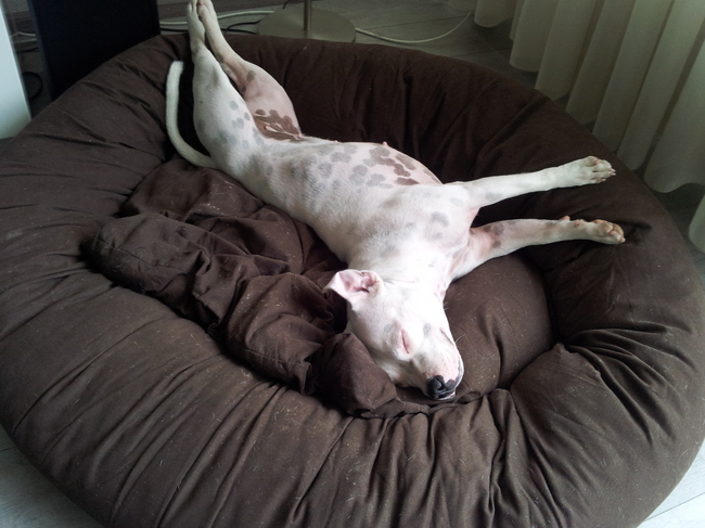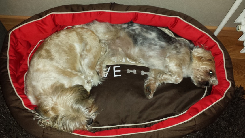 Turbo heeft vanalles en ligt vooral eigenlijk in een versleten relaxzetel, maar van kussen enzo ben ik toch wel heel tevreden over de doggybag (xtreme). Ik had er al één en heb er onlangs nog 2 tweedehands op de kop kunnen tikken voor een prijsje waarvoor ik ze niet kon laten liggen en als ik dan verbouw kan ik er op verschillende plaatsen eentje leggen. Goed afwasbaar en af en toe opschudden natuurlijk.
