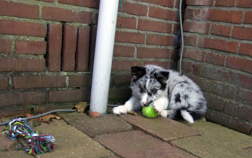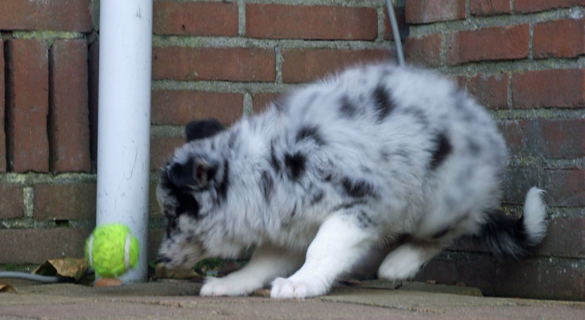 ging goed! Charlie vind de blaadjes super leuk om achter na te jagen, vooral als de wind eronder gaat natuurlijk haha