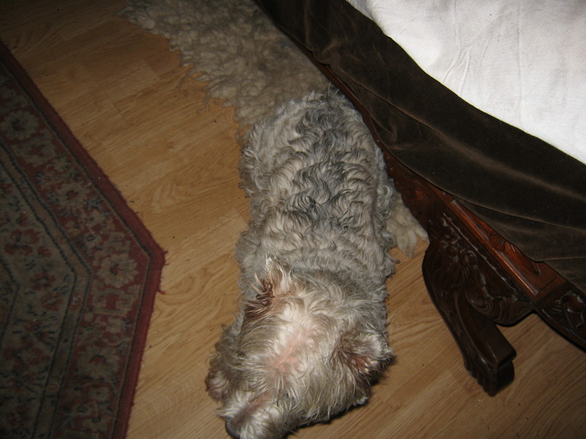 Bentley vind het echt niet leuk om in de bench te zitten, met zn kluif en de deur open is het wel oke, maar zodra het deurtje dicht gaat....