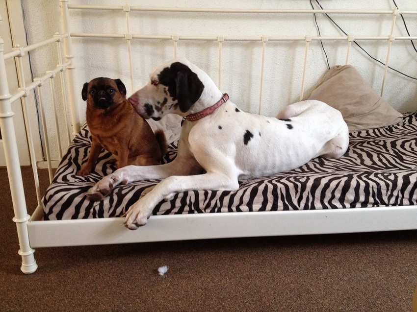 Ik heb geen foto van Bentley met een pup. Maar wel hem als pup met een andere stabij!