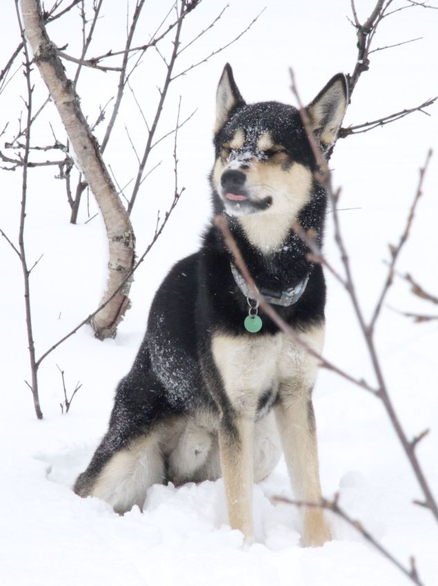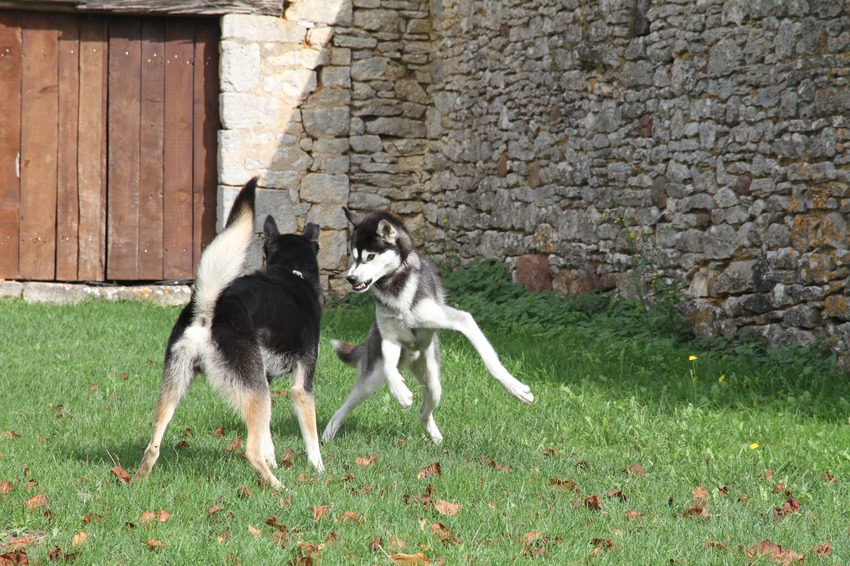 Even een korte toelichting: wij wandelen regelmatig met twee andere honden, husky-herder kruisingen, een reu en teef. De reu is ouder en meer ervaren dan mijn meneren, zeer 'taalvaardig" en er wordt altijd nogal wat afgekletst onderling. Onlangs kwam er een aantrekkelijke Akita dame bij. Zeer aantrekkelijk... En toen gebeurde er dit: