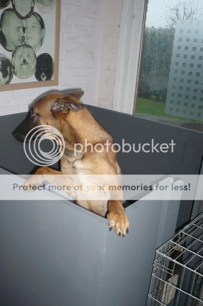 Dit weekend mijn werpkist gemaakt (en ben er best trots op...ze is helemaal zoals ik ze wilde) en wilde haar laten wennen, maar dat heeft ze niet nodig. Deze nacht er al in geslapen. Kreeg haar er met geen stokken uit. Ik moet haar niet vragen waar ze het liefst in ligt....de bench of de werpkist.