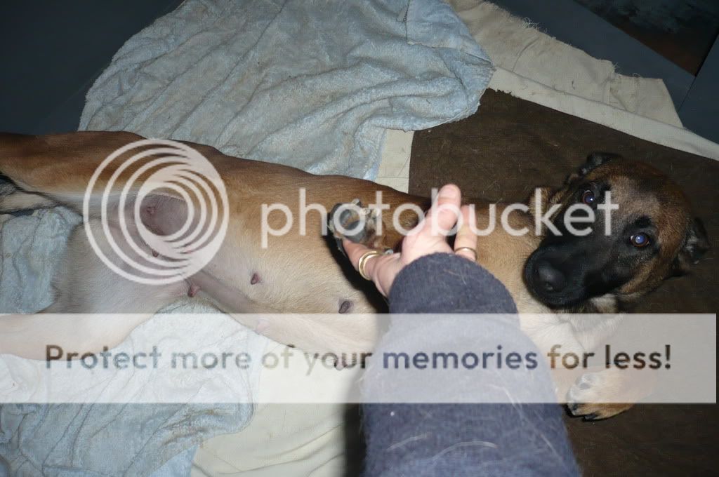 Maar 3 pups? Kweet niet, maar ik denk dat ze daarvoor toch wat te dik is (ze was gisteren 5w+1dag gedekt)