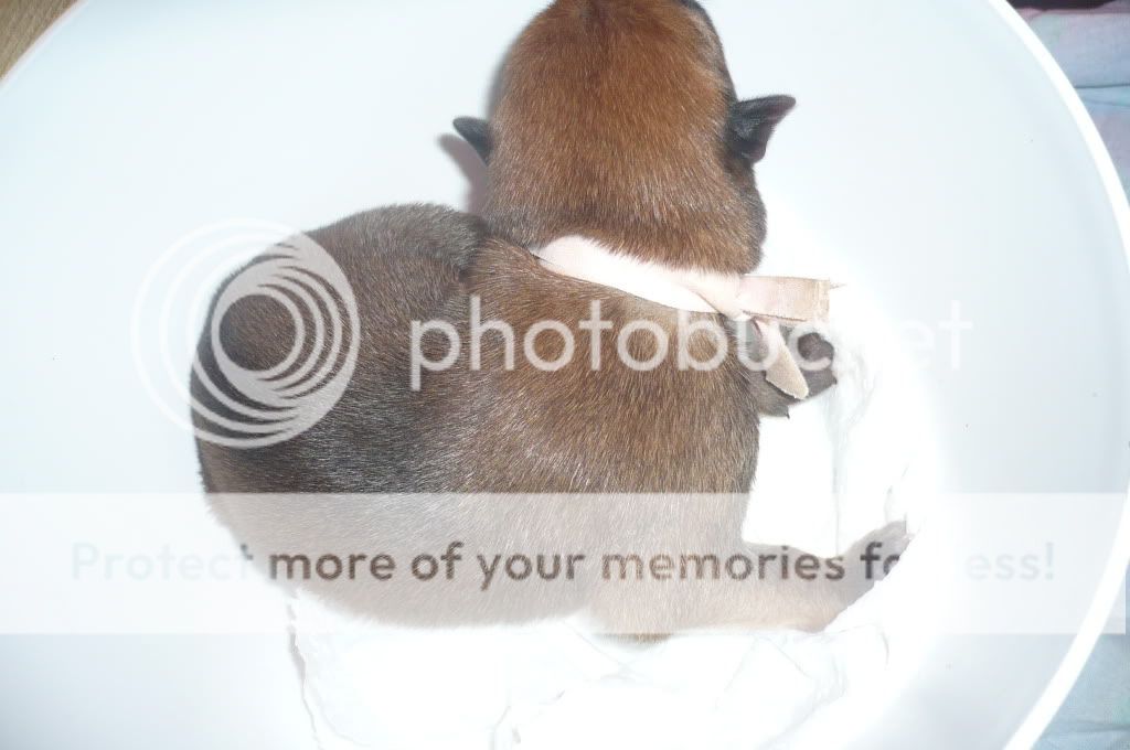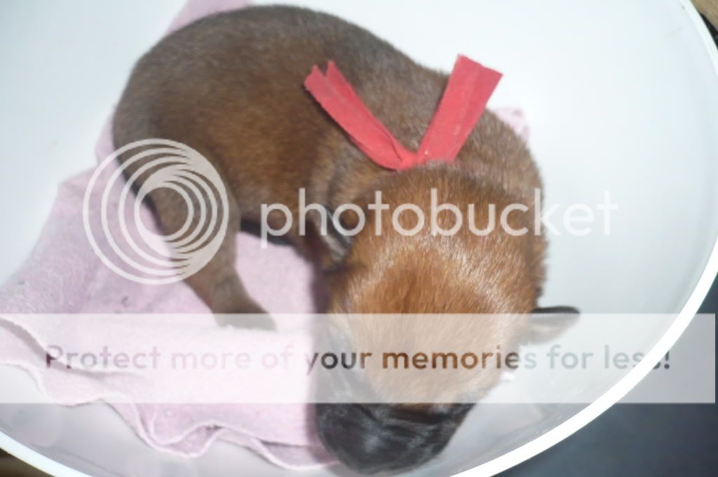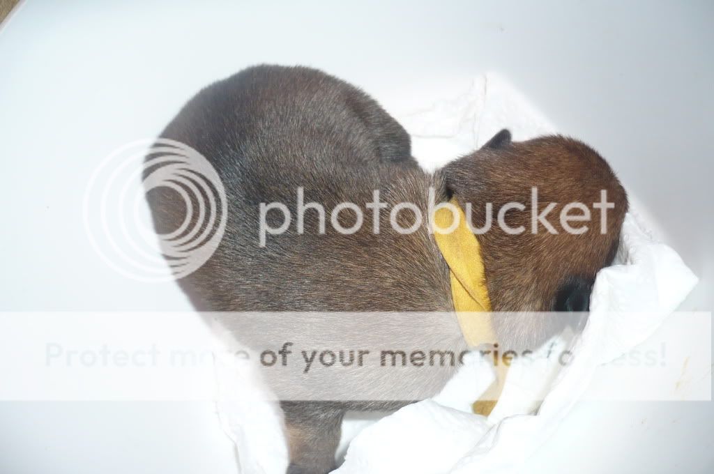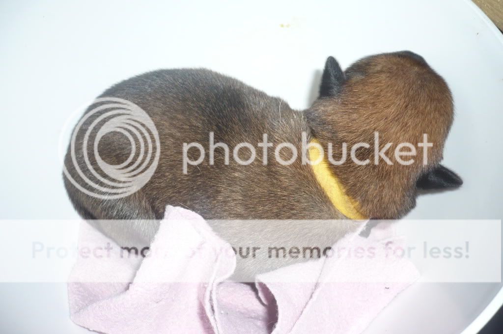teefje geel. De lichtste van de hoop bij de geboorte, maar ze is aan een inhaalbeweging bezig en dat lukt haar goed. ze is momenteel al zwaarder dan het lichtste reutje was 350-384-424
