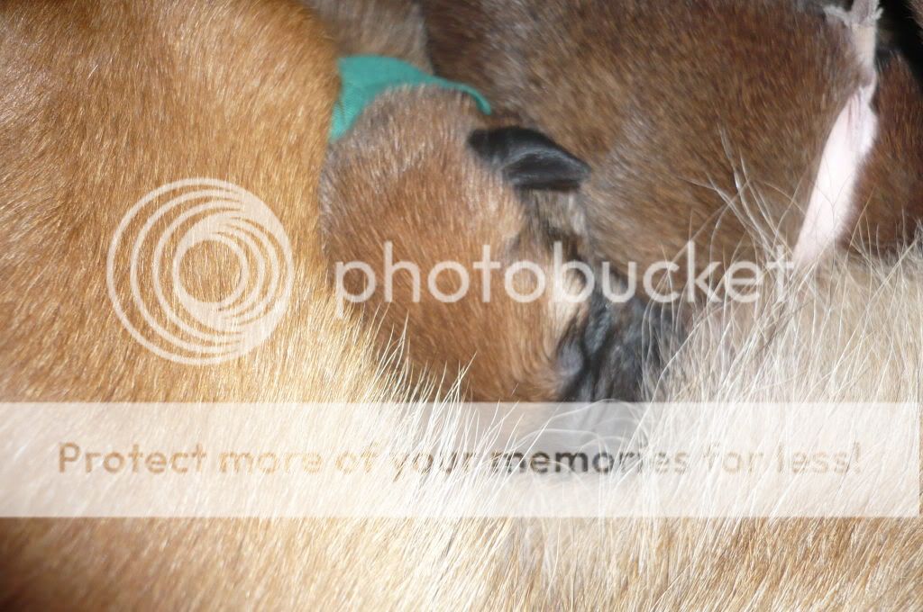 Djinnie liet het al iets beter toe al vond ze het nog maar niks dat ik ze even van haar weg nam, maar nu liggen ze weer allemaal lekker bij de mama.