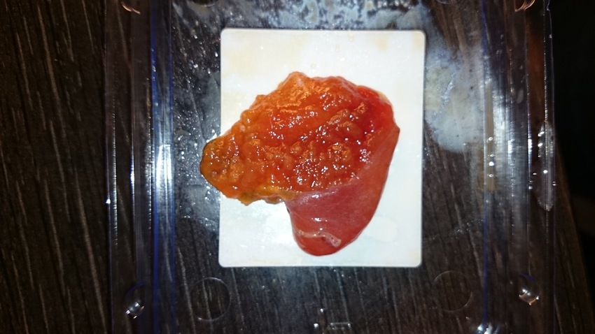 Dit zat in de schol die ik net een puck voerde. Ze wou het niet eten, at er netjes omheen. Weet iemand wat het is? Het zat dicht bij de ruggengraat.