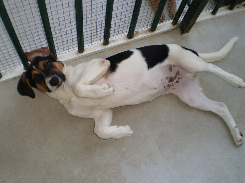 Dit is van Lady bij ons op dag 1. Op het moment zelf zag ik het niet zo, maar ik vind dat ik nu wel goed op de foto zie, dat ze erg 'afwezig' was en niet ontspannen. Ook niet gek gezien hoe vaak ze geplaatst er herplaatst is, etc. Ze was op het begin erg hyper of juist heel moe en vaak onrustig. Toen zag ik dat niet zo sterk, maar achteraf gezien was er denk ik behoorlijk wat stress.