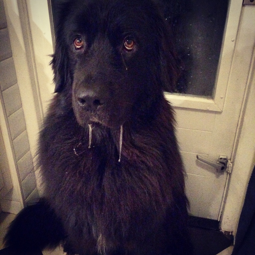 Die Landseer zat al de diepvries leeg te eten. (deur stond open)![]()