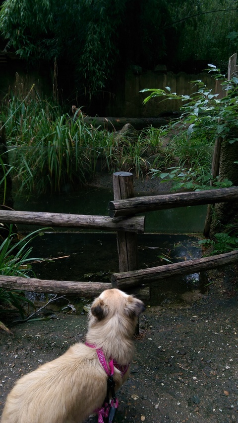 Ook zijn we nog een dagje naar de dierentuin geweest met mijn nichtje en mijn moeder/haar oma. Lupa mocht natuurlijk mee. Weinig foto's gemaakt maar wel een geslaagde dag. Inclusief slaag van de grote beer! De beer lag in zijn vijver vlak bij het glas en zag Lupa... zet grote ogen op, zwemt naar de kant, klimt op het stukje land naast het raam en lijkt weg te lopen. Maar hij slaat me toch vol tegen het raam waar Lupa net met haar neus tegen stond te kijken naar de beer. Lupa schrok maar alle mensen er om heen die foto's stonden te maken schrokken. nog veel harder. Wat dan weer grappig was om te zien.