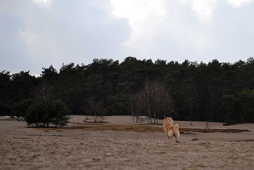 ´s Middags zijn we met de auto naar de Soesterduinen geweest en hoewel ze de vorige keer nog enorm zat te trillen & hijgen, was ze even een paar seconden wat gespannen en onrustig maar ging al snel zonder trillen & hijgen op schoot liggen. Wauw! In de duinen heb ik haar gelijk los gelaten. Iets wat ik dooooodeng vind omdat ik dit niet gewend ben (Tico kon niet los i.v.m. zijn sterke drang om te drijven) maar aan alles van Lupa merk dat ze geen weglopertje is. En dat heeft ze bewezen! Ze bleef zo goed in de buurt, alsof er op 20 meter om ons heen een soort grens lag en ze op de rem ging en vanaf daar ging zitten kijken i.p.v. doorrennen. Heel vrolijk met andere honden kennisgemaakt. Ze hield ons heel goed in de gaten en kwam regelmatig even een koekje & aai komen halen met een blij bekkie van "Leuk is dit he!?" Heerlijk om haar zo los & vrij te zien genieten en er zelf ontspannen bij te kunnen lopen. Eén keer rende ze zo enthousiast een kraai achterna dat ze achter een heuveltje uit zicht verdween. Na even wachten riep ik haar naam en kwam er een heeeel blij hondje van de andere kant achter het heuveltje vandaag rennen haha.