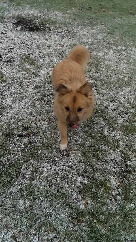 Thuis heeft ze mijn natte sokken veroverd! Net toen ik mijn schoenen had uitgetrokken en de handdoek had gepakt, pikte ze de handdoek en rende de achtertuin weer in. Mooi niet dat ze dan wil komen dus mocht ik zelf op mijn sokken de sneeuw in. Niet zo'n lekker gevoel!