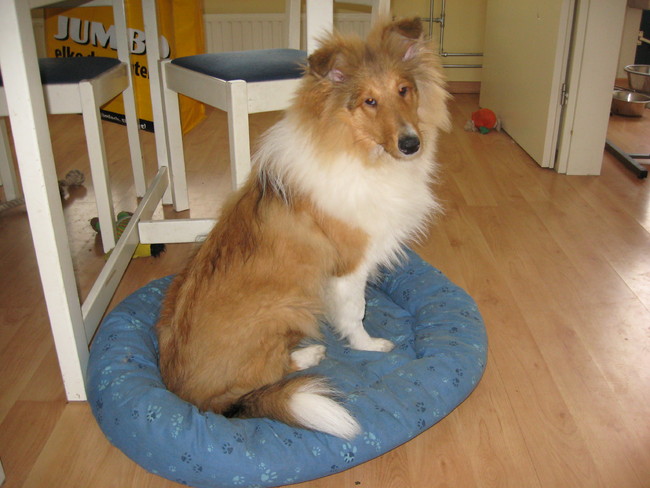 Bo weeg ongeveer 22-23 kilo. Laatst weer gemeten kwam tussen 58-61 cm uit. De vorige keer op een topic 64-66 cm gezet,hihihi