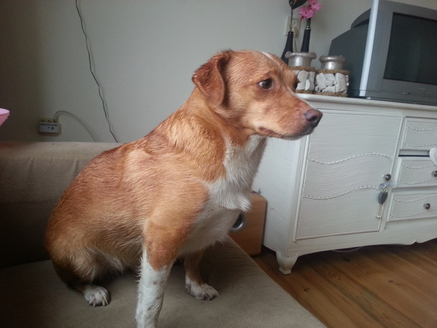 En hier mijn allereerst foto van Moh, hier had ze een eigen halsband, andere naam en allerbelangrijkste hier had ze sinds 5 minuten een thuis ![]()