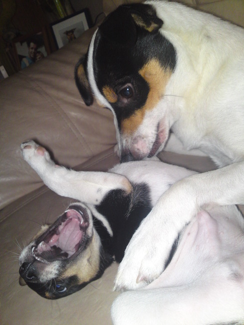 hier mijn drie meiden aan het stoeien ...wie is de slimste