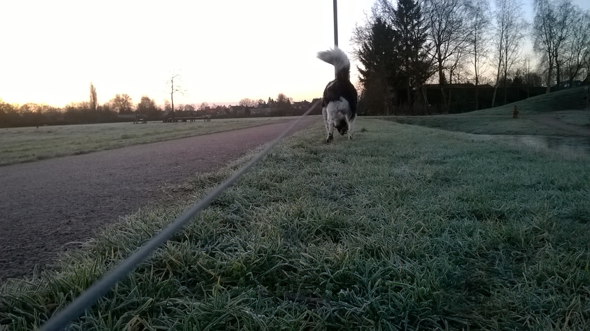 Hier al een blokje om erop zitten. Met benji gaat het iets beter op dagen zoals deze dus rondje 5min langer gemaakt. Hopelijk krijgen we het opgebouwd naar rondjes van 20min per keer, of nog ietsje meer. Zelf lijkt hij er geen moeite mee te hebben voor het eerst in zijn leven. Hij vind korte rondjes, lekker thuis kbuffelen en wat hersenwetk ook leuk, misschien wordt het nu wel een echt oud mannetje haha! Het droog en de zon probeert door te breken. Straks nog even tape halen om wat dozen in elkaar ze zetten en een beetje huishouden. Natuurlijk ook met de hondjes er op uit.