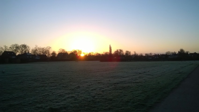 Toen we vanochtend in amstelveen aankwamen was het wnterwonderland! Alles lag onder een laagje ijzel en al het water was onder een dun laagje ijs, op de door de "roze-vingerige Eoos" beschenen Amstel na.