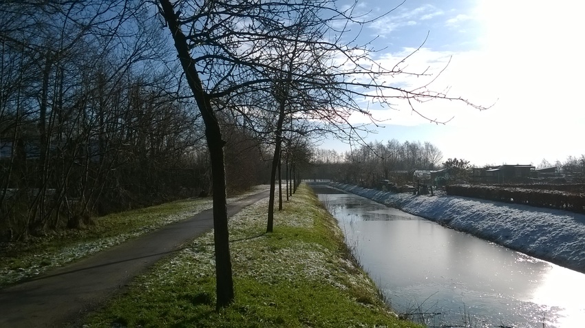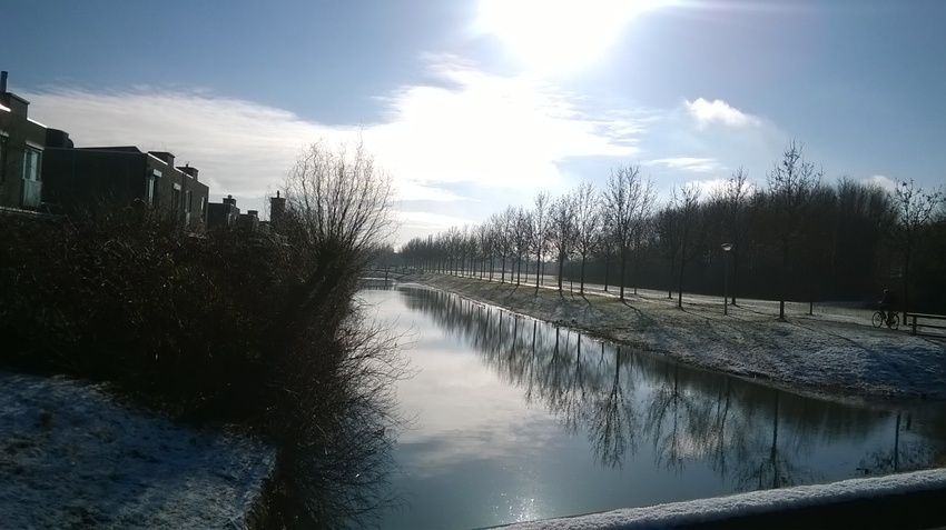 Hier glibberen vanochtend, en piepklein opgevroren laagje sneeuw. Alles is nu allang weg.