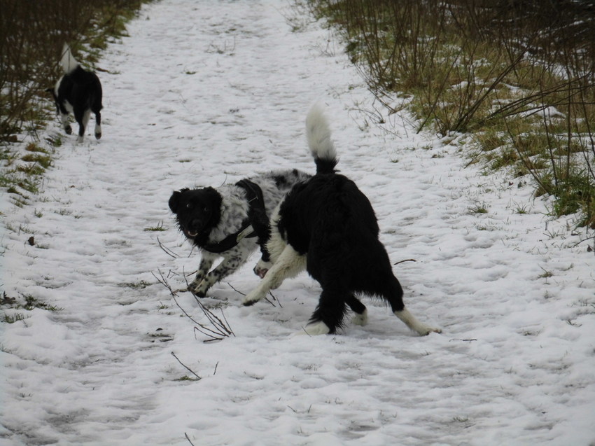 Wij hebben hier geen sneeuw gehad vandaag, wel een paar weken geleden. Hierbij een aantal foto's van Cody met zijn vriendjes aan de stake-out, in actie waren de hondjes veel te snel voor de camera.