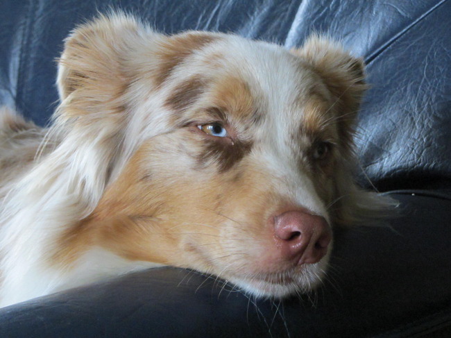 Hier een kunst lederen bank, waar bijna elke dag wel een hond op ligt, heb er meestal wel een kleed op liggen omdat mijn australian shepherd nog weleens de neiging heeft om haar nagels in de bank te zetten ( soms denkt ze dat ze een kat is ).