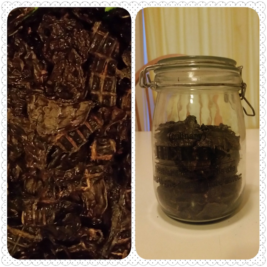 De helft ligt nog rauw in de vriezer en de rest is dus gedroogd.
