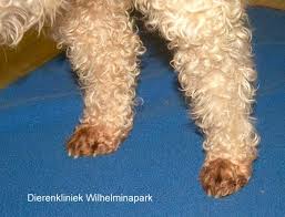 heeft die plek ongeveer de zelfde kleur als bij deze hond op de voetjes vanonder?