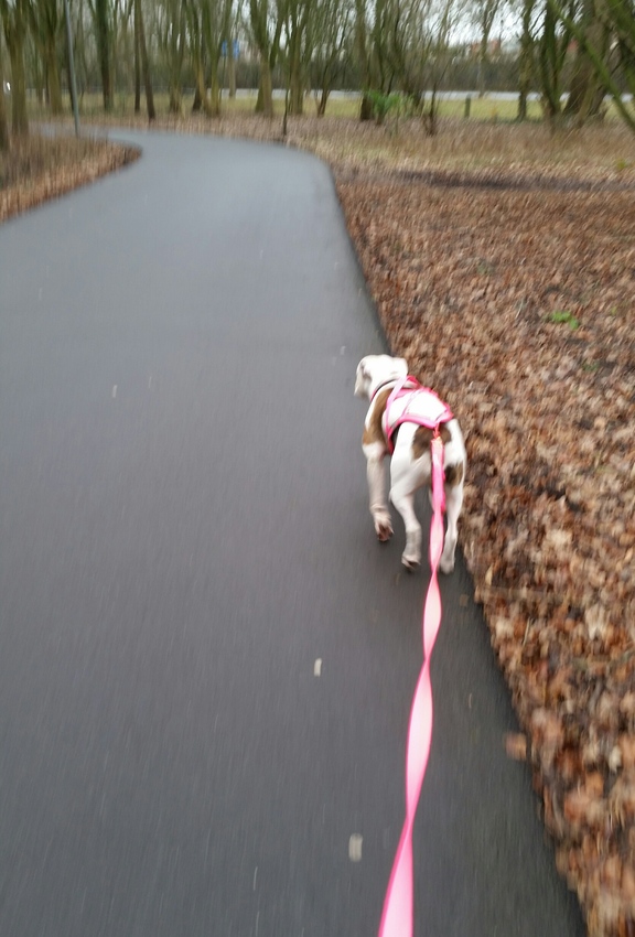Wat wel jammer is: de tijd van met schone poten thuiskomen is nu echt voorbij. Schone sneeuw is weg, blubber, modder, stinkplassen zijn nu even ons deel onderweg, zucht...