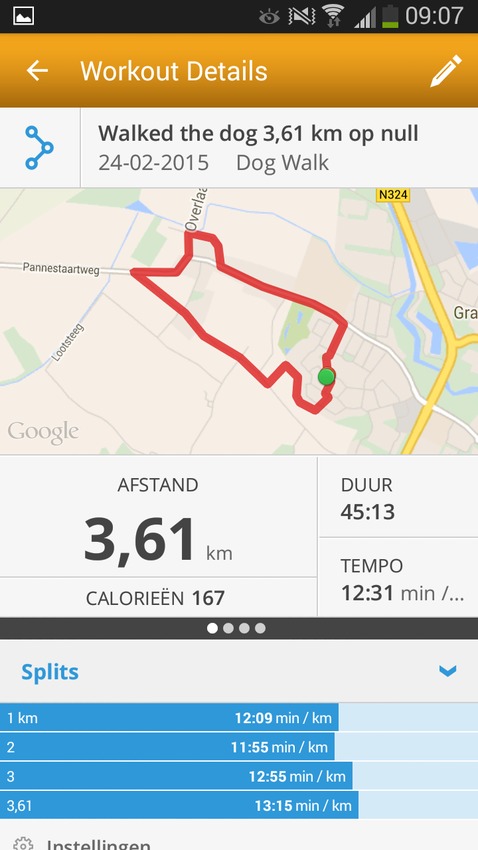 Ik heb de app van MapMyDogWalk weer eens op mm telefoon gezet. Kun ke zien wat je route is,tijd,calorieën en kilometers. Zal straks mn route laten zien hihi!