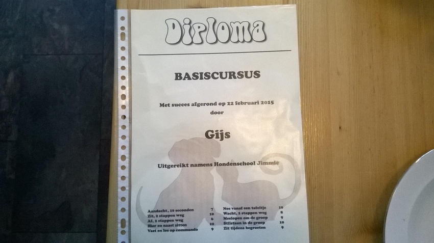 Mooi Lieke, goed bewaren, of anders aan de muur inlijsten, en ja ik zou mooi weer verder gaan met een cursus, je wilt even wachten, maar altijd leuk om toch met je hond bezig te zijn. ![]()