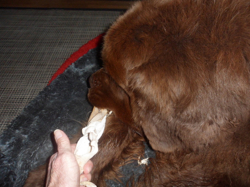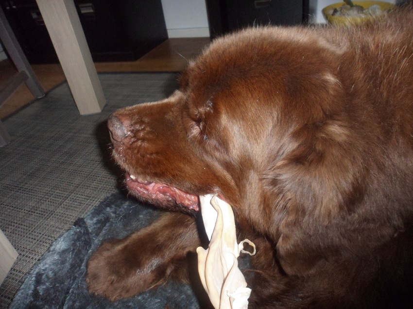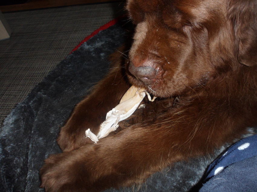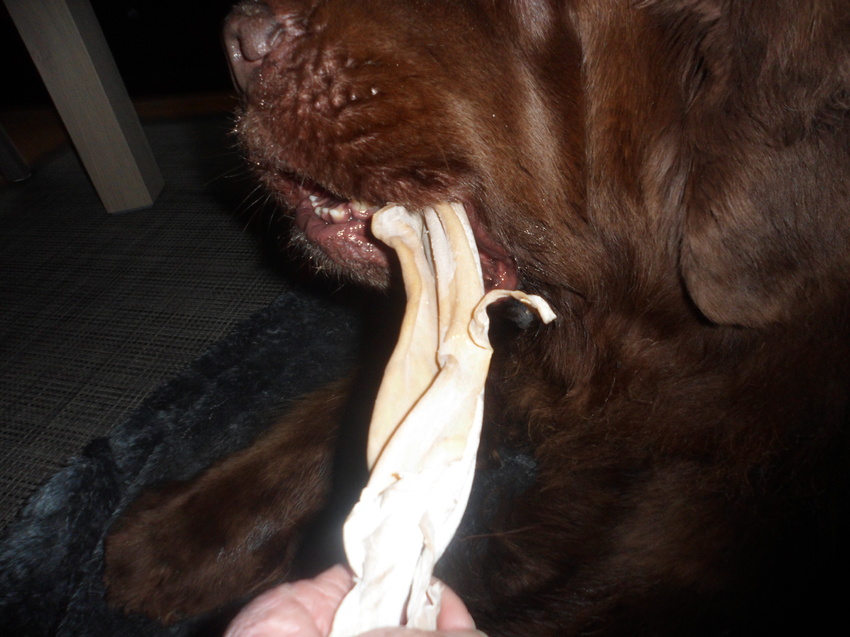 iets uitkiezen, en ja hoor een duur iets weer, herte huid... twee grote kluiven mee naar huis en triompfantelijk liep ze weer over straat richting huis, zucht, een gelukkige hond..