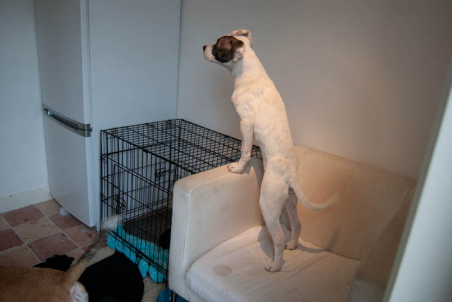 Zo zo hebben jullie een eigen hondenkamer wat leuks zeg. moeten jullie daar vertoeven als de baasjes weg zijn.