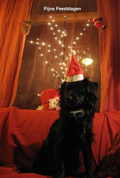 Het hele huis gaat hier in kerstsfeer, binnen en buiten, alleen heb ik niet echt een boom. Eén klein kunstboompje wat bovenop de televisiekast kan staan, verder niet. Niet dat de honden niet voorzichtig zijn, maar we wonen niet groot en dat kost teveel ruimte. De honden zijn heel voorzichtig, ik heb 3 jaar in een bloemenwinkel gewerkt, waar we op de grond ook glazen vazen en zo hadden staan en de honden liepen er altijd heel voorzichtig tussendoor, nooit wat gebroken.