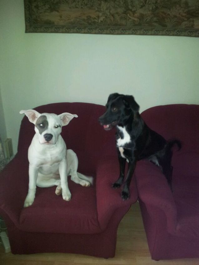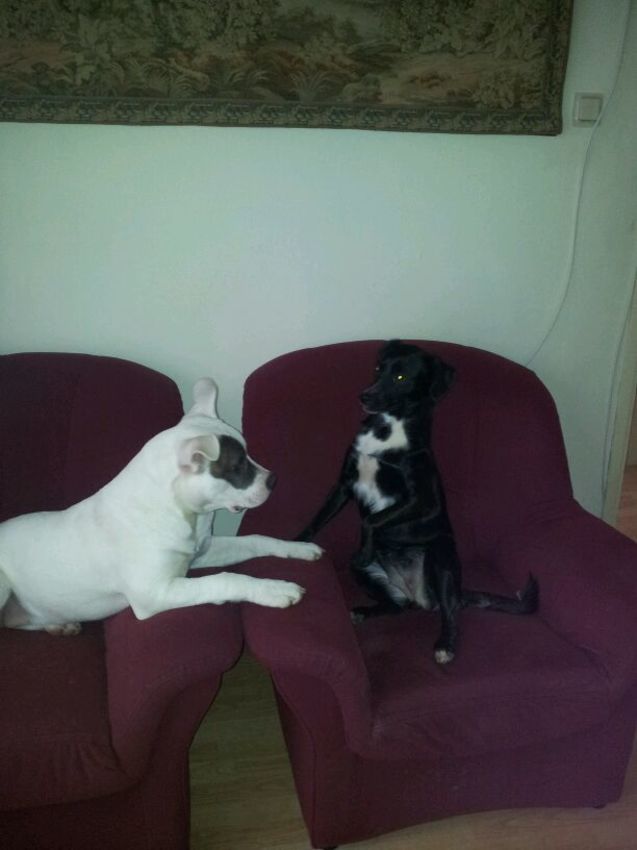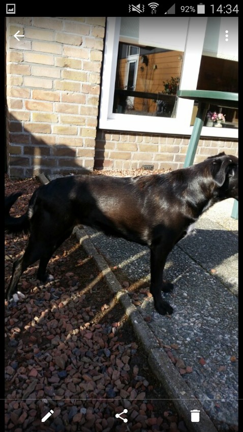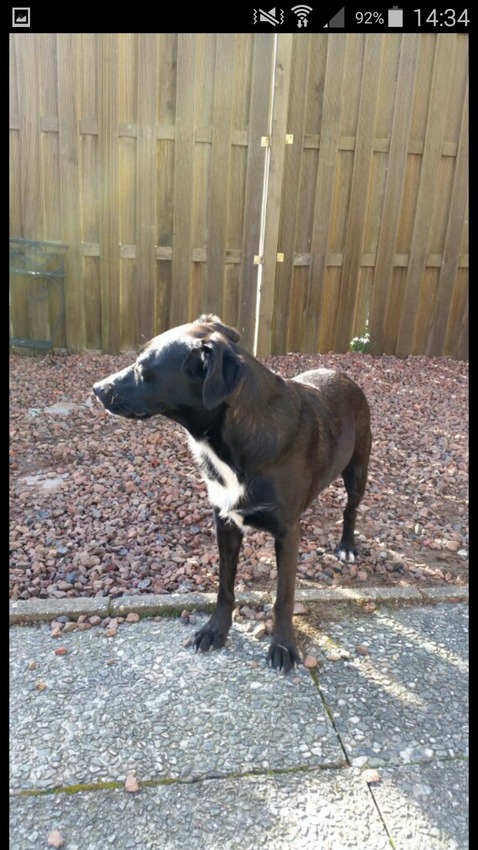 Hmm...ze komt me zo bekend voor...ik zag eens een pupje op Marktplaats staan die erg op haar lees...ik dacht toch dat t een Friese Stabij X Heidewachtel was of iets in die richting.....misschien schiet het me later weer precies te binnen!