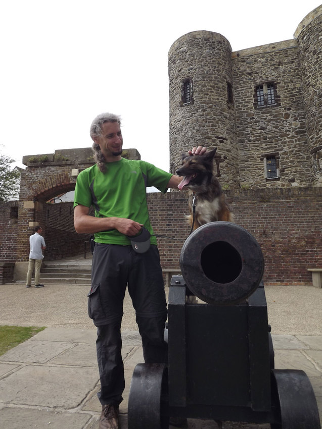 Op een kanon in de fortificaties van Rye: