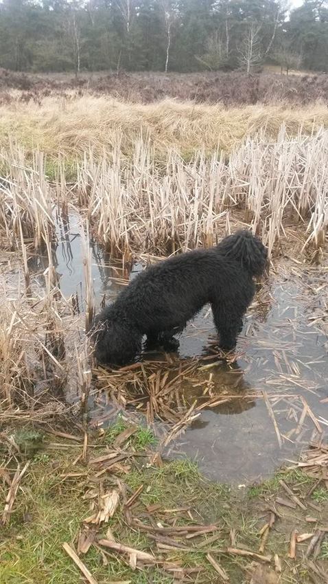 Nog steeds mooi weer, dus onderweg lekker drinken uit een kreekje.