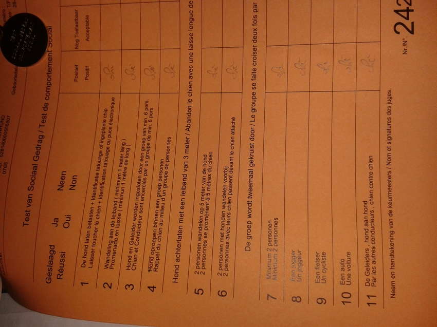 En ondanks haar wantrouwen soms naar vreemde mensen met glans geslaagd voor de socialisatie test. Haar eerste medaille