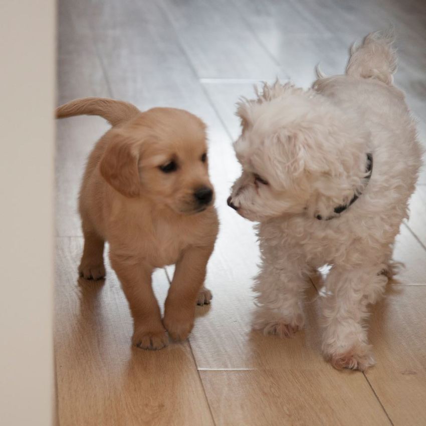 Deze foto's zijn van afgelopen weekend, ze is inmiddels ongeveer net zo groot als de Maltezer (Tessa) op de foto.