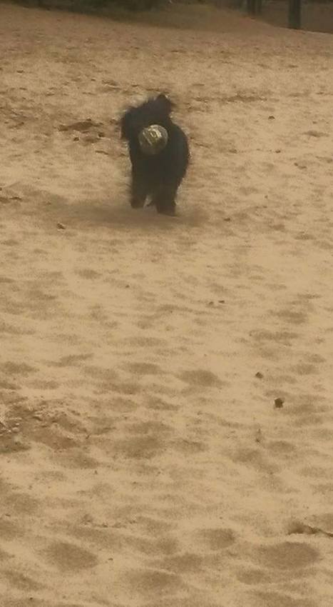 Met Black ben ik nog wel naar het bos geweest, naar de zandverstuiving gelopen. Daar lag een bal, daar ging hij mee spelen dus daarna zat hij onder het zand.![]()