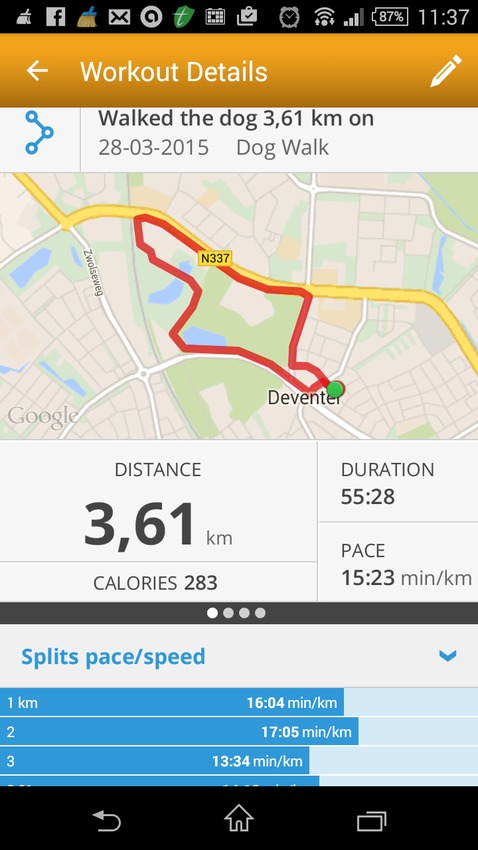 Edit: tijdens het gebeuren met de blonde labrador de app niet op pauzeren gezet. Sadi werd nogal wild, ging zowat onderuit lol tja die andere hond beantwoorde haar enthousiasme, en op dit moment kan Sadi nog niet los en een wilde hond aan de lijn die draait rent en wil spelen is niet erg handig in dit geval. Maar heb goede hoop met de huidige rondes die ze nu aan kan. Dus op korte termijn het trainen met hier komen etc. opfrissen en dan eerst omheinde gebieden gaan opzoeken. Al vind ik dat zonder Tjaard erg eng.