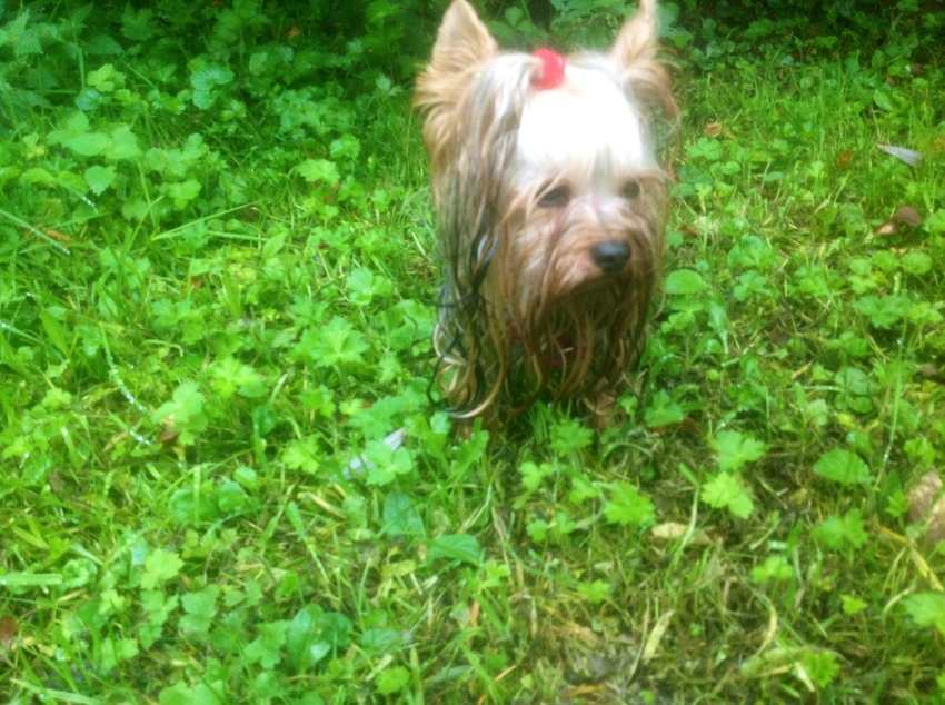 Pienie kijkt altijd boos in de regen, van die boze oogjes en helemaal hoofdje omlaag haha ![]()