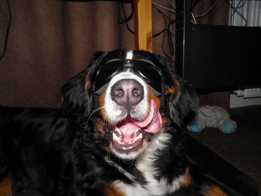 Edit: binnen steeds even oefenen ging aardig, maar buiten nog een ramp. Af te leiden is ze niet, ze gaat liggen en dan proberen met de voorpoten de bril af te doen. Zonder bril met de huidige wind en haar ontstoken oog (die niet nog erger moet worden geen optie) dus al weer terug thuis.