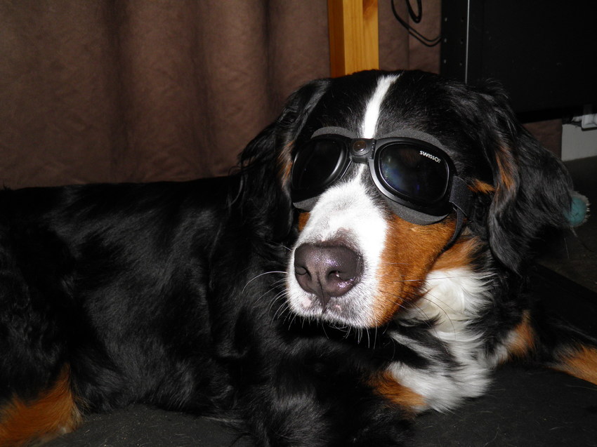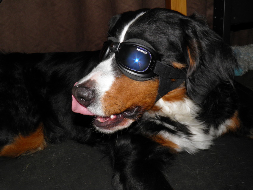 Wel even afwachten nog of ze m volledig gaat accepteren maar als het bij harde wind ontstoken ogen kan voorkomen is het de moeite waard te proberen haar eraan te laten wennen, en ik vind m ook wel stoer staan al gaat het vooral om dat het natuurlijk die last van de wind moet voorkomen.