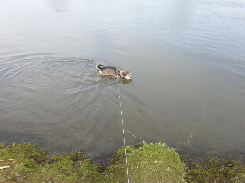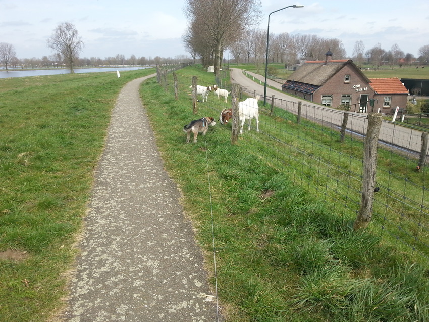 Chica heeft zich ook zeer vermaakt! Geitjes klieren en zwemmen!! Ik dacht we gaan lekker de dijk af, weilanden in langs de maaskant op!