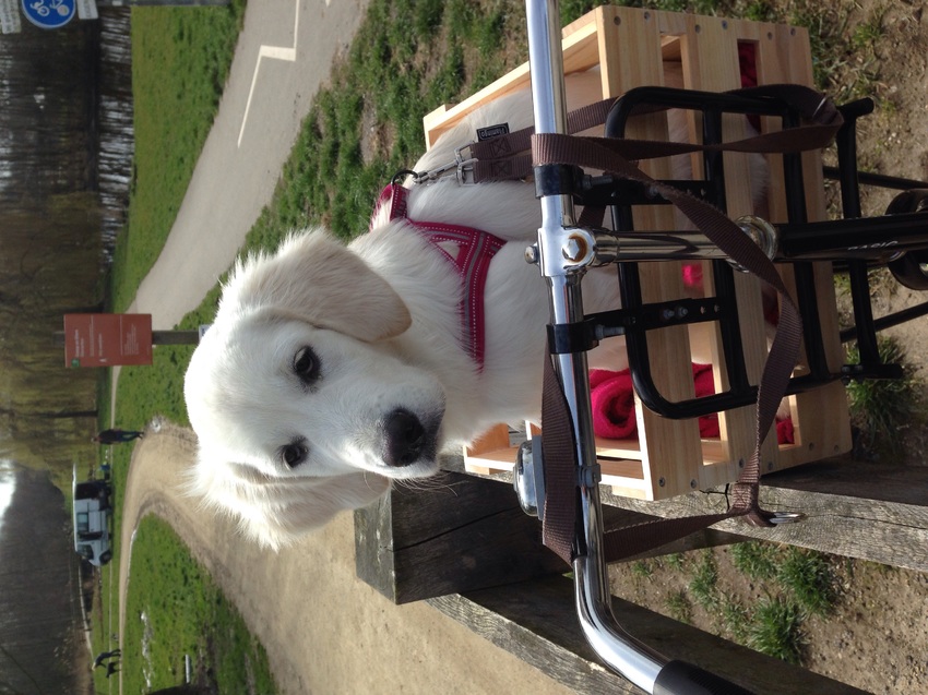 In de fietskrat, ze bleef keurig zitten!
