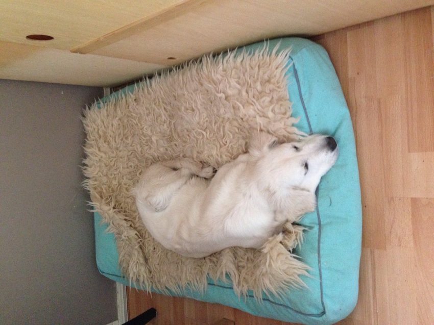 Ze ligt lekker te knorren, half slapend. Vandaag eventjes langs het asiel om het overgebleven voer langs te brengen en ook even bij de andere dieren daar te kijken samen met Indy.