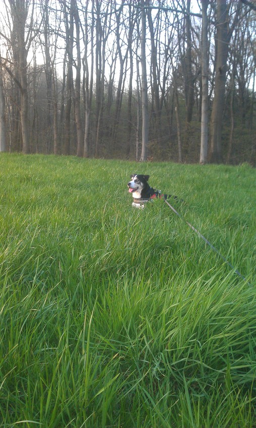 Mellow heeft in het paardenveld even pootje gebaad in de plas. Hele zachte bodem, dus zwarte voeten. En dan ga je rollen in het gras en kom je met je grote platvoet op je brede borst en heb je zomaar een voetafdruk op je borst ![]()