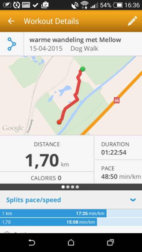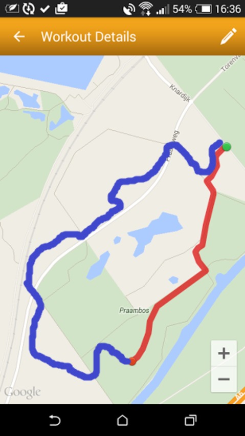 Mijn route is weer niet goed vastgelegd, terwijl de tijd wel klopt: