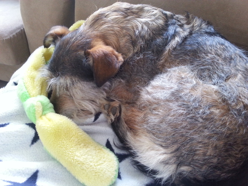 Nu ligt Chica diep te slapen naast mij op de bank ![]()