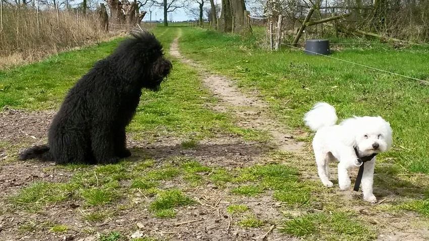 's Avonds ook weer naar de hoek. Op 'ons' veldje stond de norse buurvrouw van de overkant met haar 2 honden, ik hoorde Mellow al zachtjes grommen, dus ben naar het andere grasveldje gegaan. Moest haar even meenemen, maar ze deed een grote plas.
