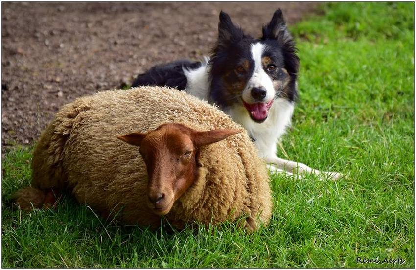 moest wel even lachen om dat schaap dat bij je hond ligt, straks denkt hij nog dat hij zelf een border is
